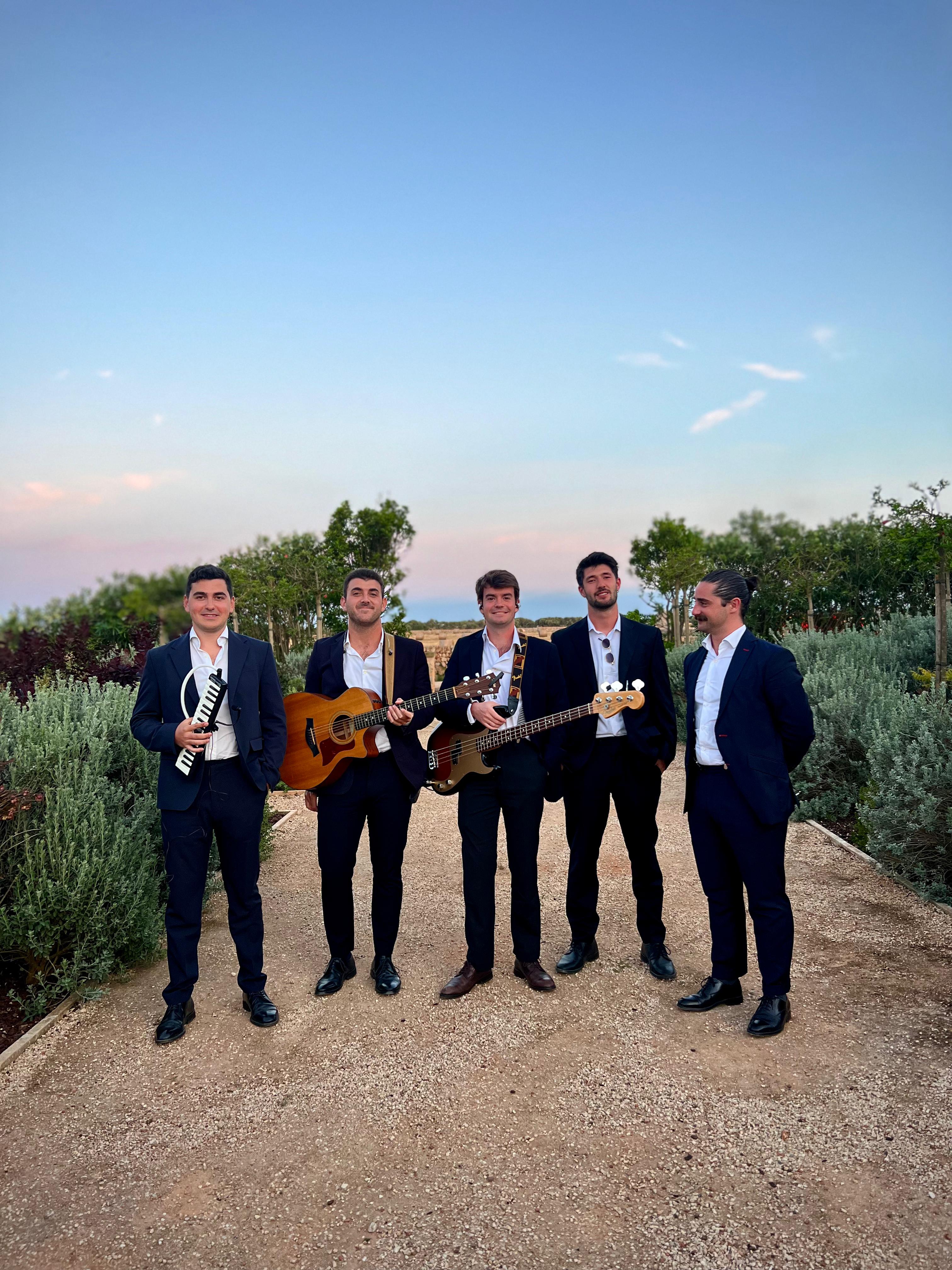 El formato de banda completa con 5 músicos es perfecto para el inicio de una buena fiesta en la que queremos tener a todo el mundo integrado cantando y bailando sin parar.
